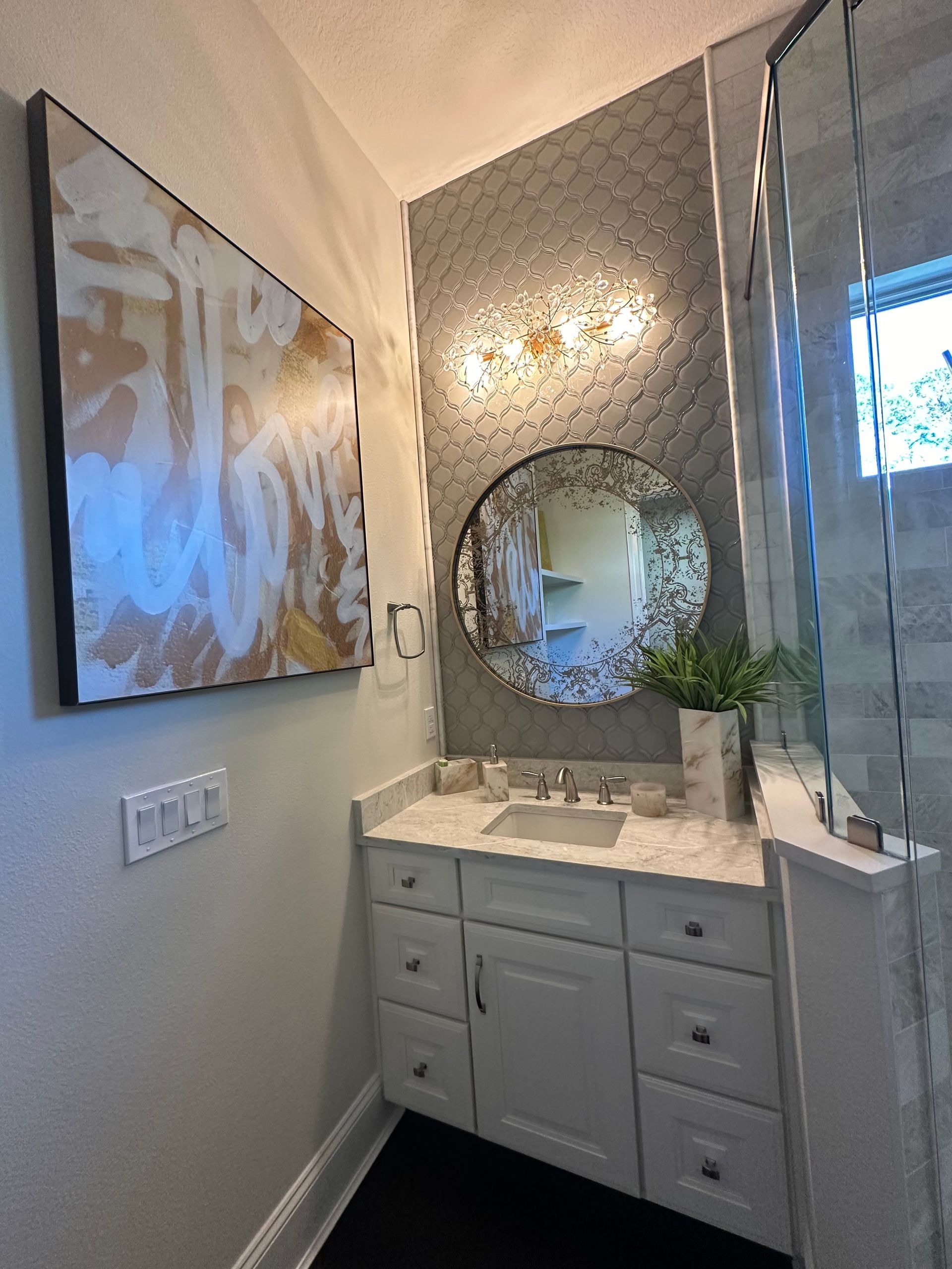 Working with this wonderful couple on their home remodel was a joy! They had a clear vision—timeless yet uniquely theirs—and we guided them through every step. From custom cabinetry and luxurious textures to stunning lighting and statement pieces, we created a warm, elegant space that exceeded their dreams. Seeing their excitement as it all came together was the best part!