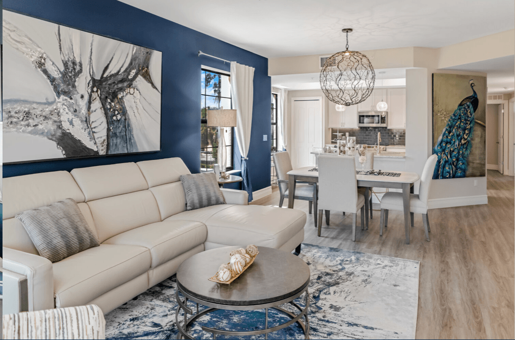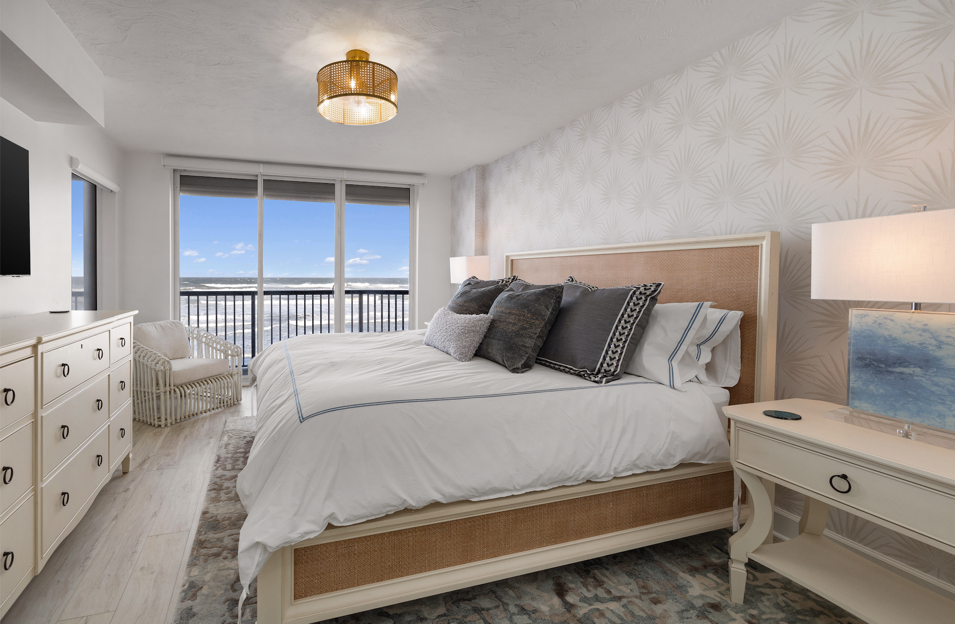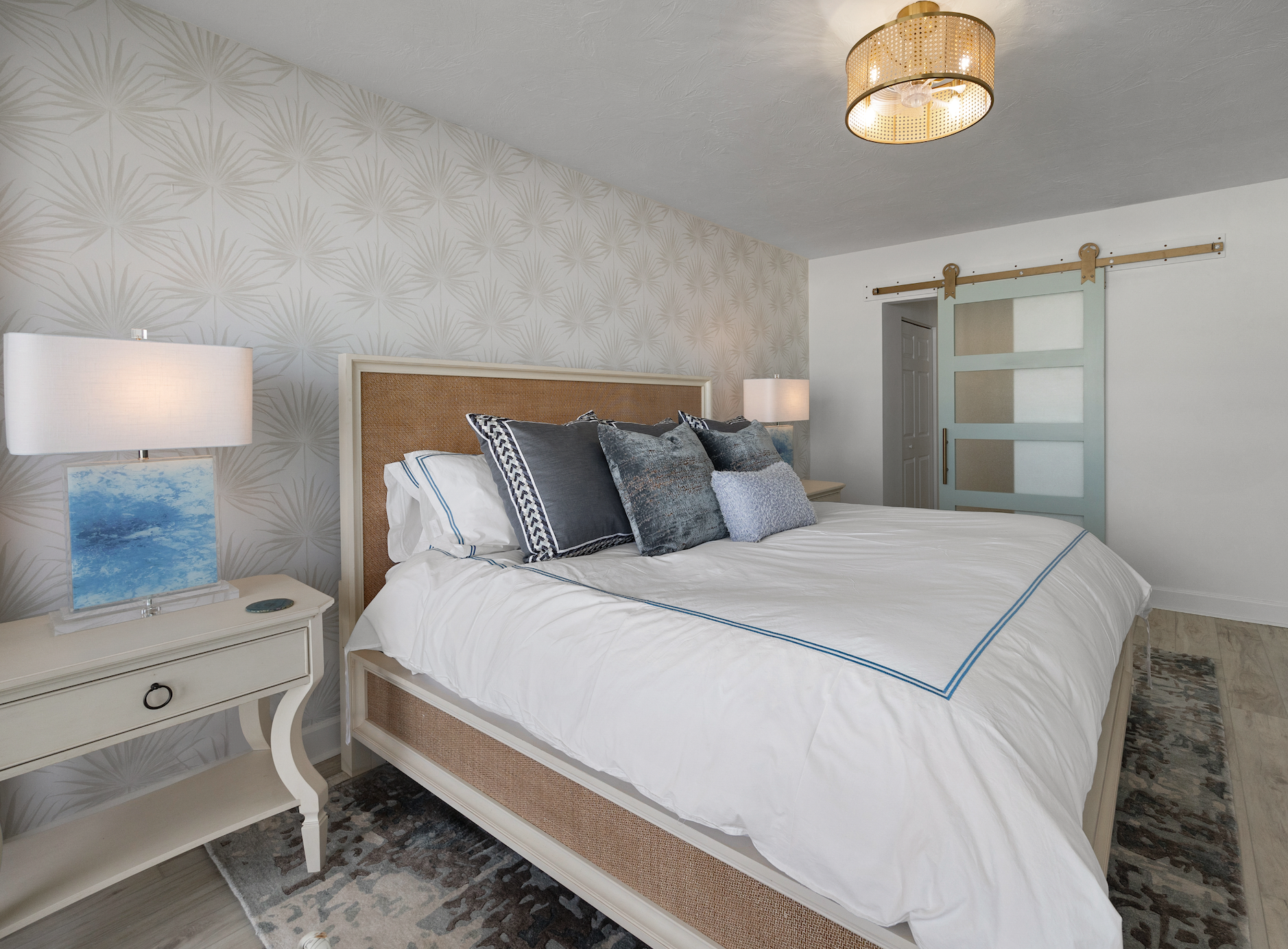 Our most recently completed project is the Atlantic Model at the Ormond Renaissance Condominiums. Designing this model was a project from beginning to end, covering every aspect. We selected the paint colors, flooring, countertops, cabinets, fireplace, and all of the kitchen/bath fixtures. Once the basics were in place, it was time to truly bring the coastal glam design to life.